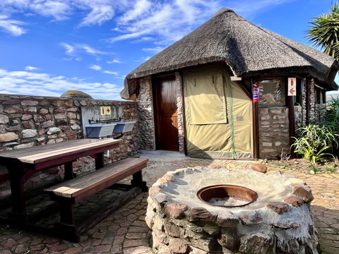 Offering views of the Outeniqua Mountain range and valley, this luxury semi-tented thatched split level unit features a king-size bed on the lower level, 2 x single beds on the upper level.