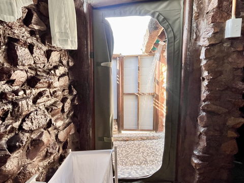 Lounge area, spa bath, outdoor shower, flat-screen TV & selected DSTV Channels, tea/coffee tray.